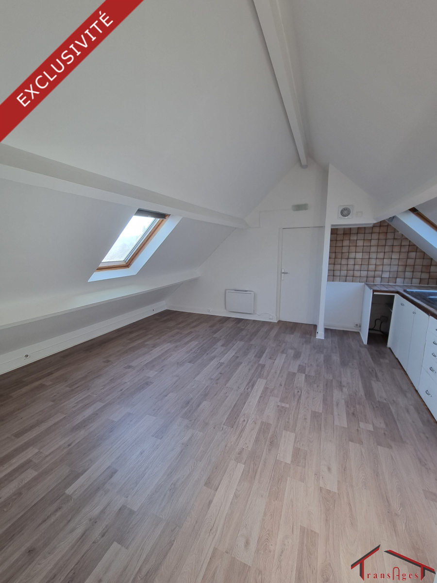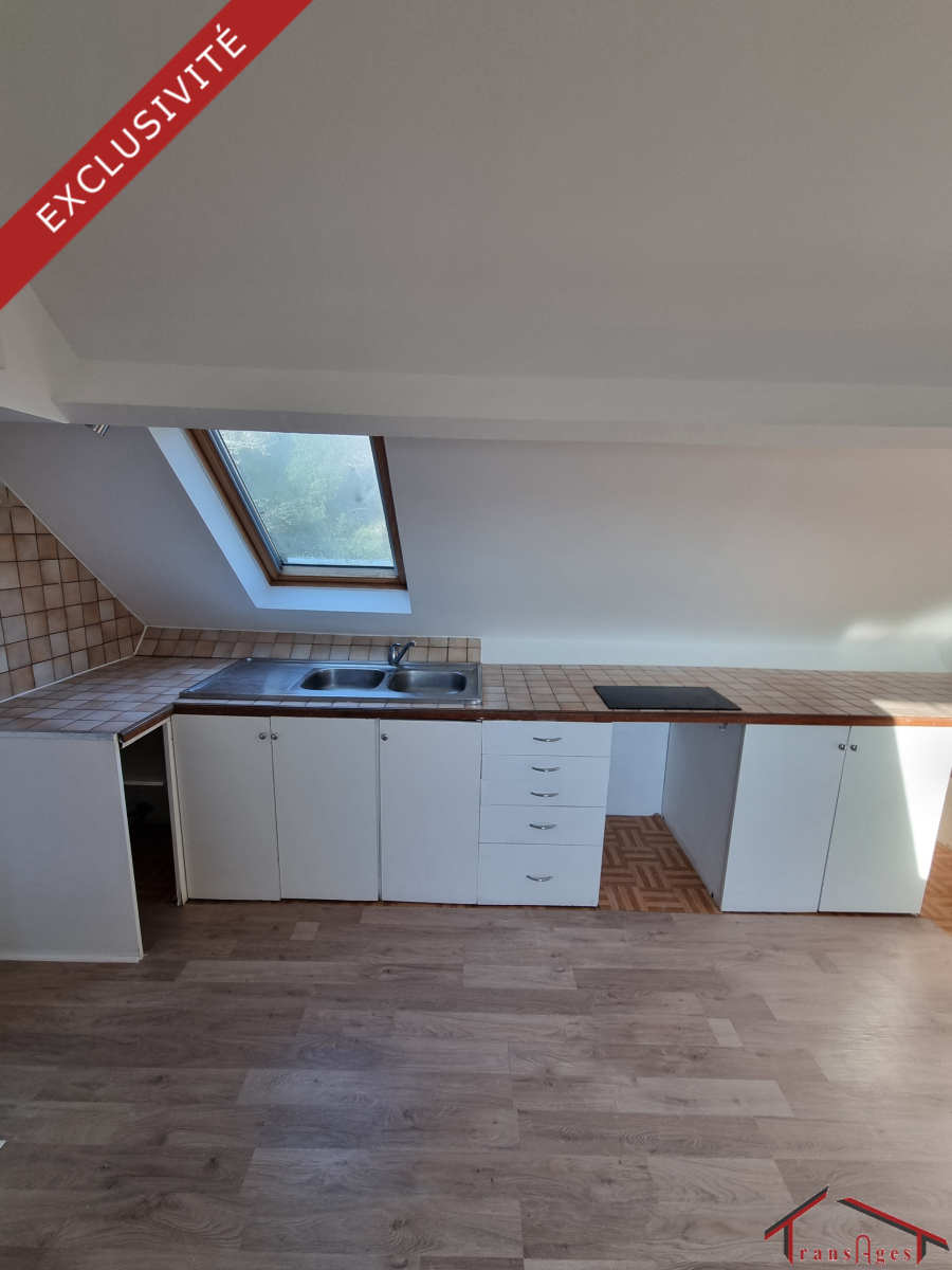 Nous vous prions proposons à la location en bail de logement non meublé, ce bel appartement deux pièces en sous pente au 2ième et dernier étage d'une maison . D'une surface au sol de 60.14 m² pour une carrez de 20.92 m². Ce logement vous offrira une grand séjour cuisine, une pièce de 8.45m² pouvant servir de chambre et une salle d'eau avec douche, lavabo et WC.